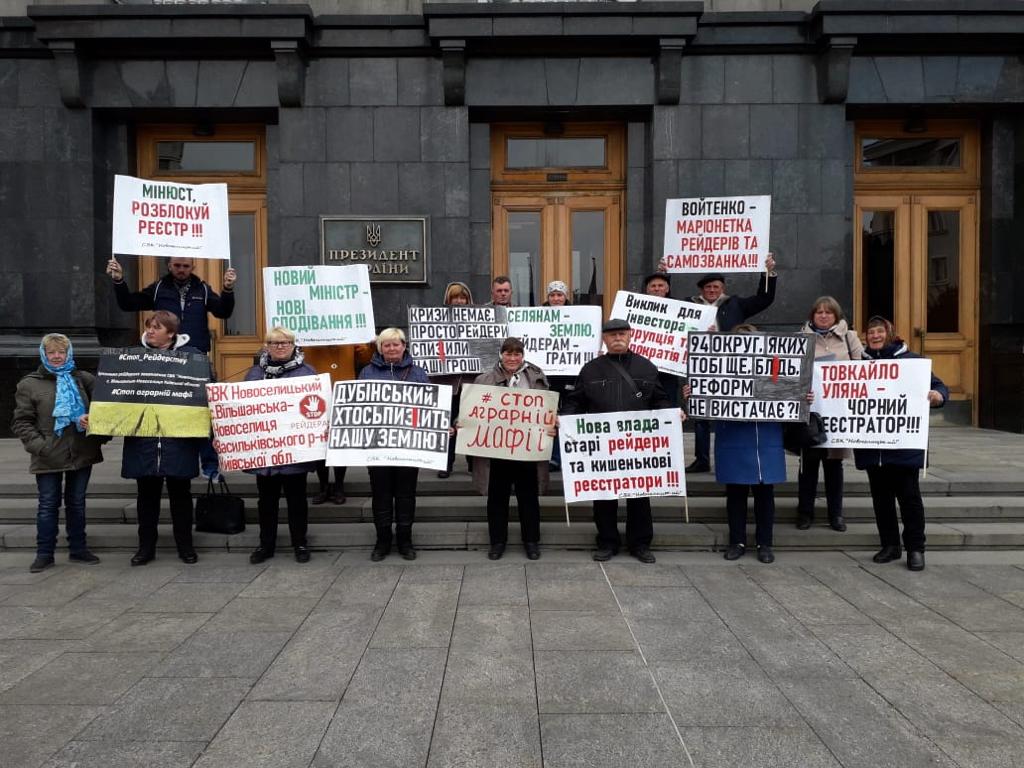 Незаконне захоплення СВК “Новоселицький”, що на Київщині методом підробки реєстраційних документів та зміни керівника, позбавило її членів усіх наявних активів кооперативу та 1000 га. землі. Половину коштів, а це близько 5 млн гривень було перераховано в касу партії Зеленського.